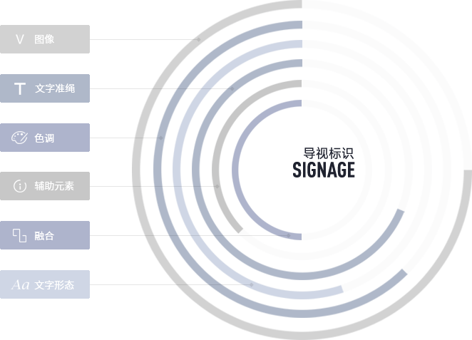 我們通過對(duì)品牌的深度調(diào)研,研究分析市場(chǎng)、競(jìng)爭(zhēng)對(duì)手、品牌狀態(tài),制定出契合品牌調(diào)性的各種元素,在符合規(guī)范和標(biāo)準(zhǔn)的前提下,保證導(dǎo)視標(biāo)識(shí)在各種環(huán)境下都能獨(dú)樹一派。